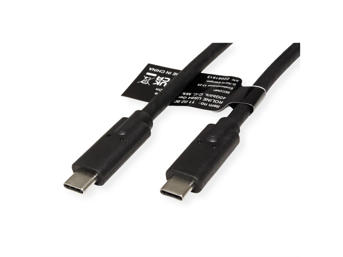 ROLINE USB4 Gen3x2 Kabel, C–C, ST/ST, 8K UHD-2, 40Gbit/s, 100W, schwarz, 1 m