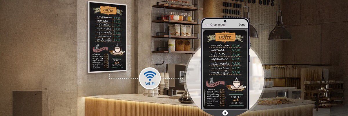 La mise à jour des contenus s'effectue de manière flexible via le Wi-Fi ou le Bluetooth intégrés. En combinaison avec des solutions CMS modernes telles que Samsung VXT, il est possible de piloter de manière centralisée des réseaux étendus d'écrans E-Paper et de les alimenter en nouvelles informations, sans qu'un accès physique sur place ne soit nécessaire.