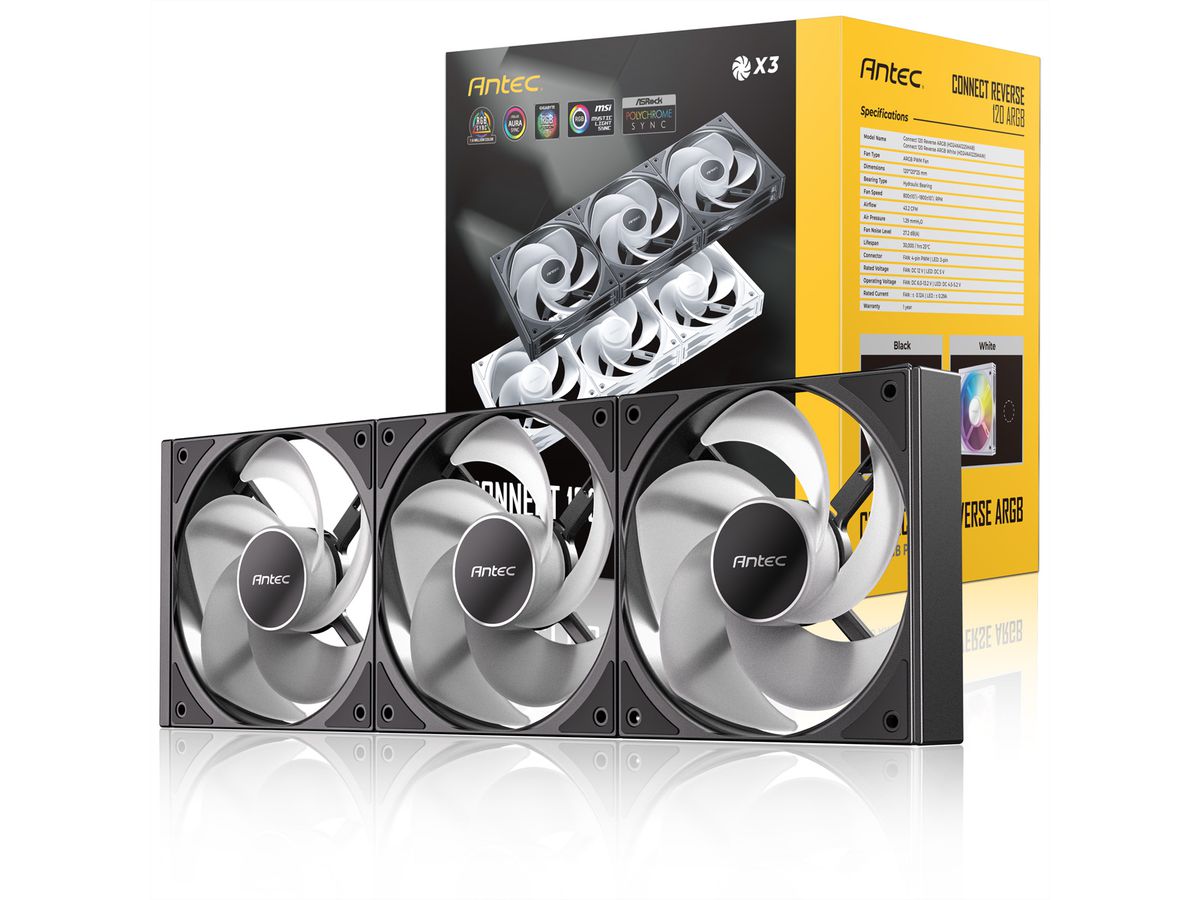 ANTEC C120 ARGB Ventilateur de boîtier PC inversé 120 mm, lot de 3, noir